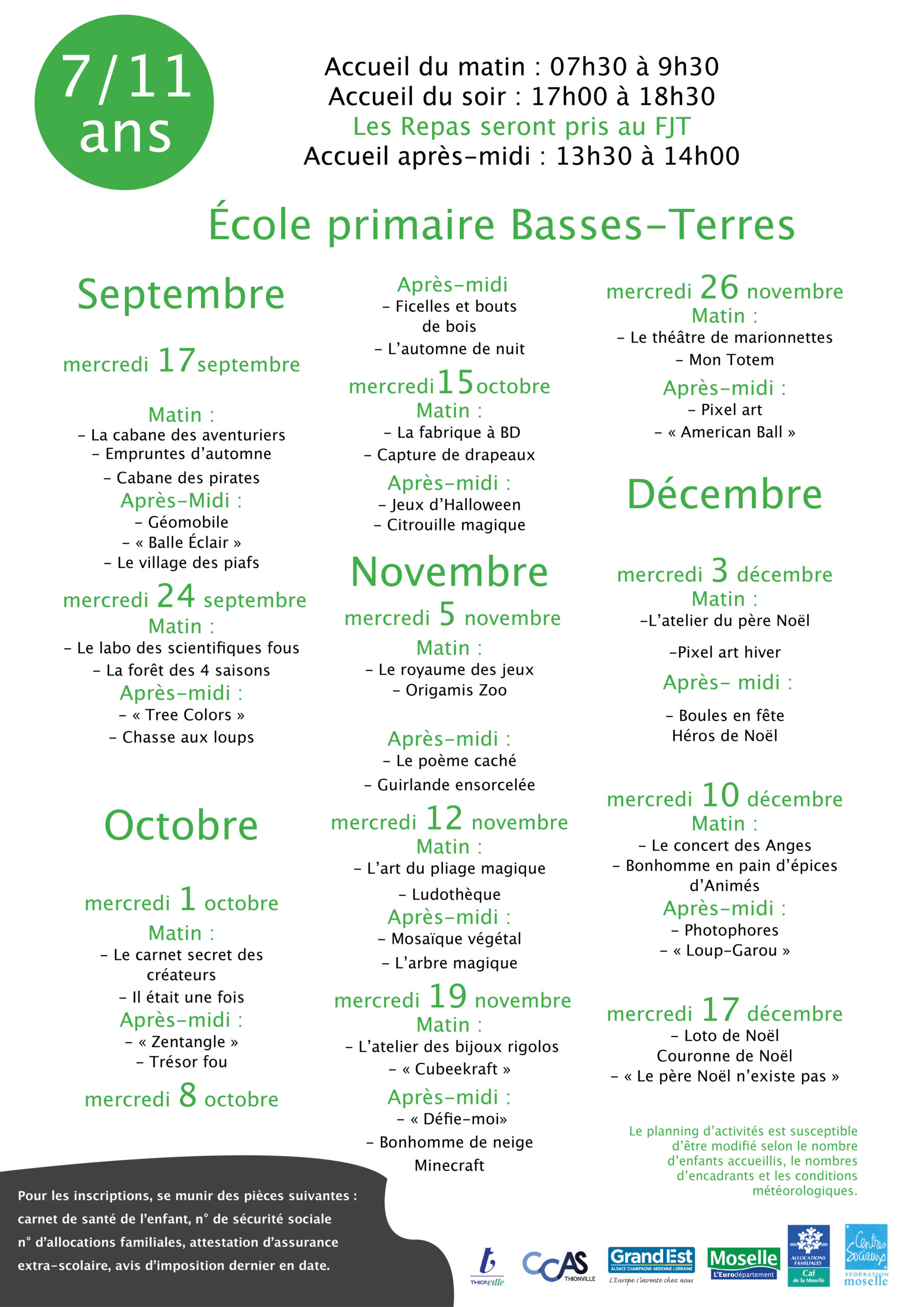 (Les mercredis sont ouverts à tout le territoire.)